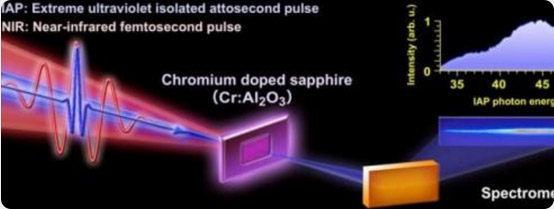 在以前的研究中,該研究團隊NTT研究人員生成了孤立阿秒脈沖(IAP),并在氮化鎵(GaN)半導體內以1.2-PHz的頻率實現了對電子振蕩的監(jiān)測。接下來的挑戰(zhàn)將是觀察摻鉻藍寶石(Cr:Al2O3)絕緣體中更快的電子振蕩并描述超快電子移相。該研究結果將有助于開發(fā)未來的電子和光子器件。